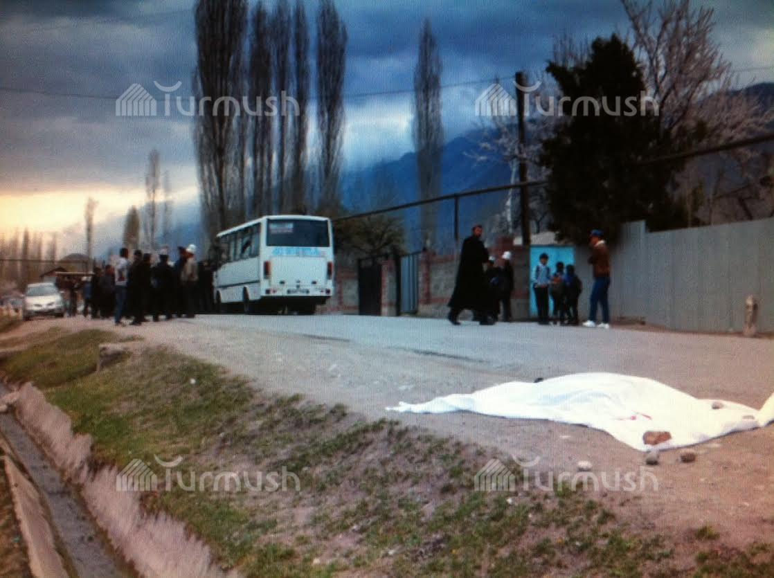 Фото с места ДТП в Баткене, где рейсовый автобус из Узбекистана переехал 9-летнего ребенка