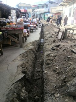В городе Кадамжай строительство канализации на центральном автовокзале Пулгон создает проблемы для продавцов мини-рынка